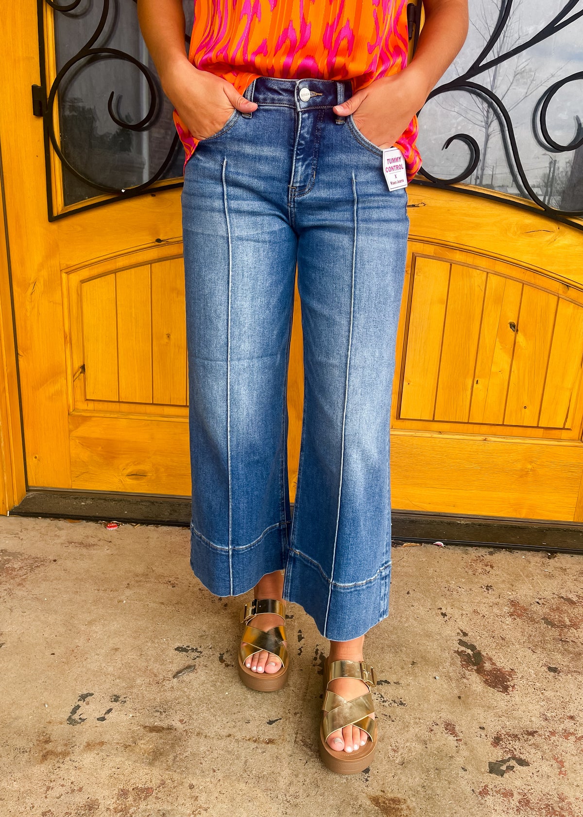 Give It My All Tummy Control High Rise Crop Wide Leg- Risen Jeans