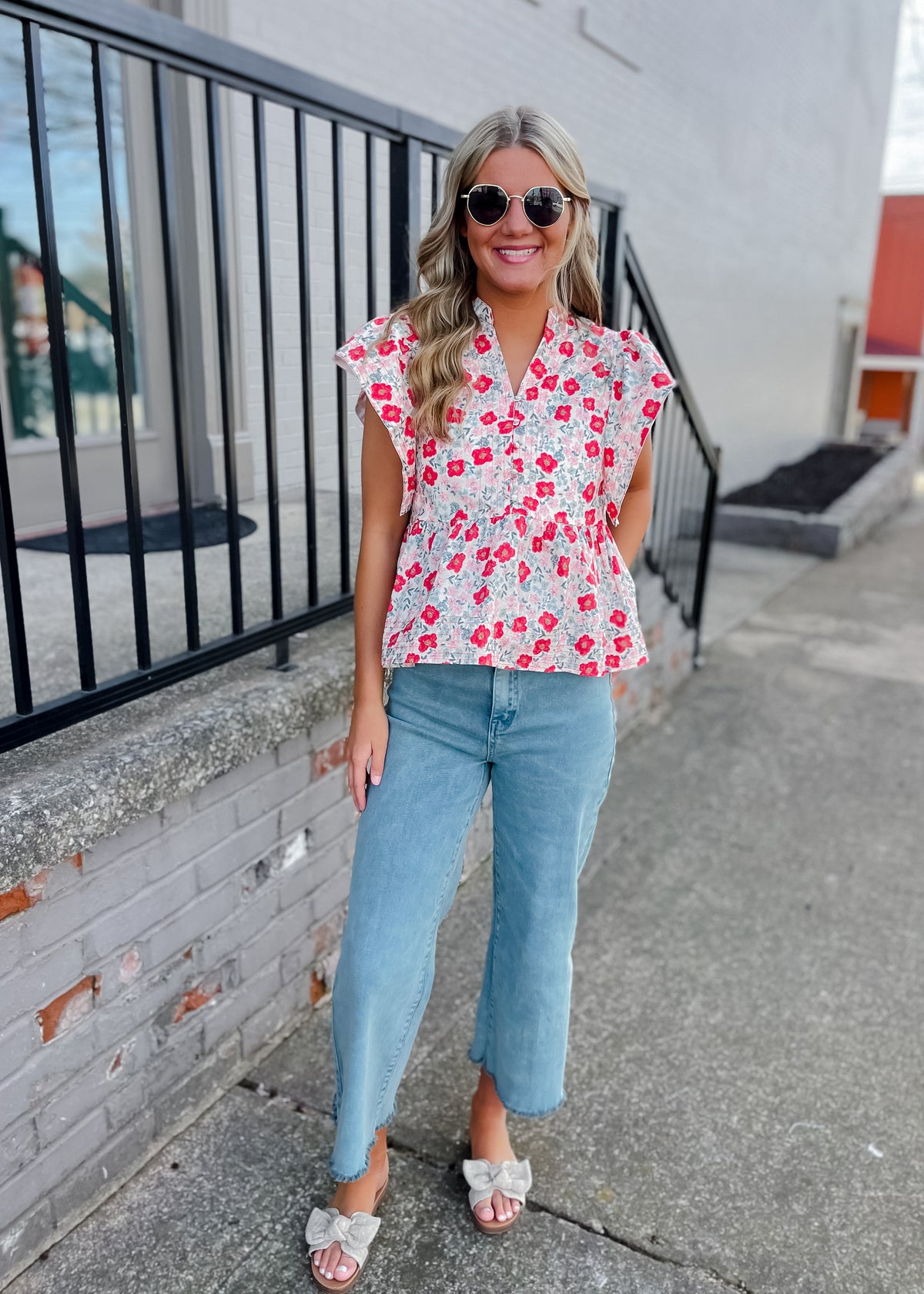 Petal Perspective Tummy Control Cropped Embroidered Risen Jeans