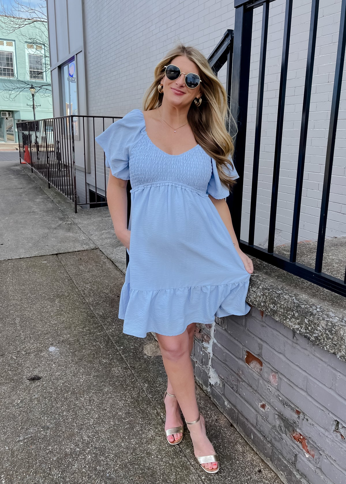 Made for Lovely Days Smocked Mini Dress- Powder Blue