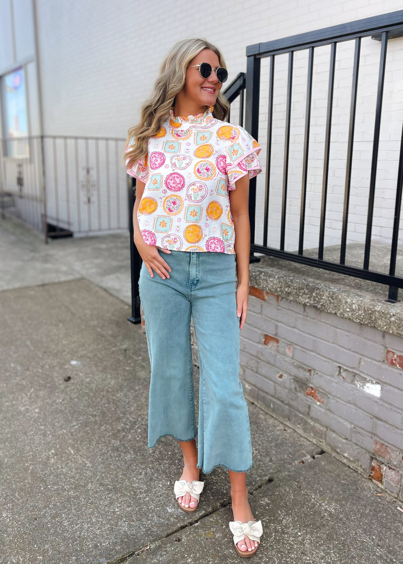 Little Too Late High Rise Crop Line Detail Wide Leg- Risen Jeans