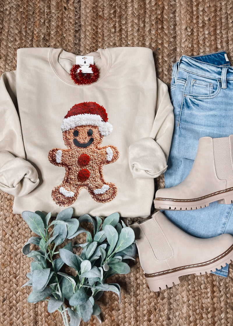 Gingerbread Man Faux Yarn Sweatshirt (S-2XL)