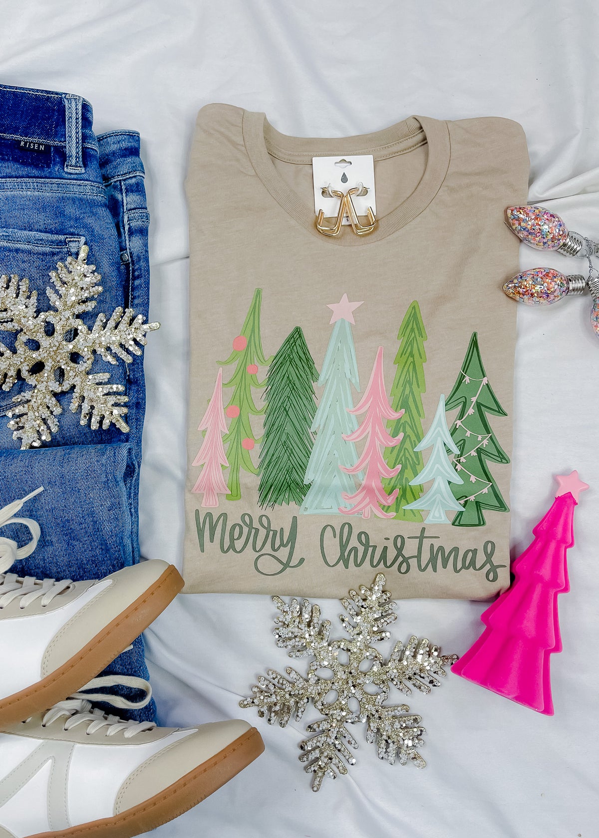 Merry and Bright Christmas Trees Graphic Tee (S-2XL)