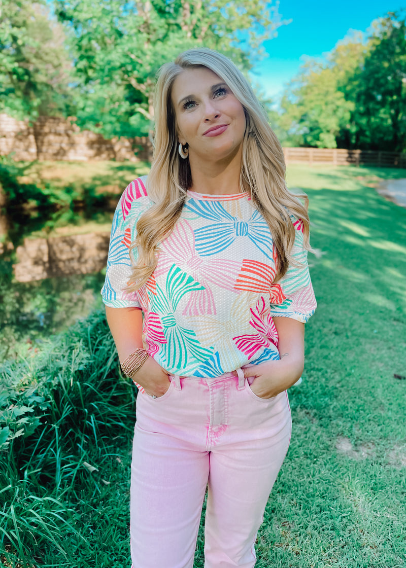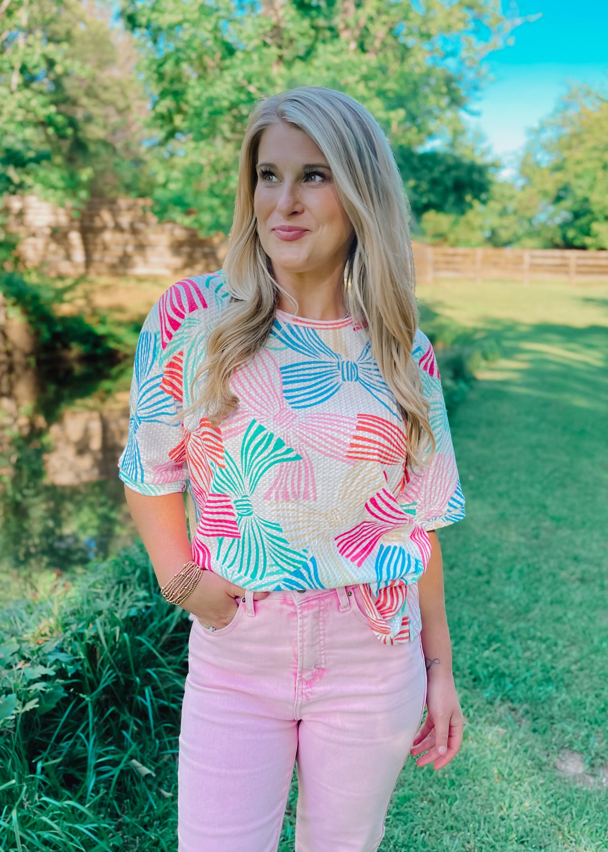 Endless Ease Bow Ruffle Sleeve Knit Top