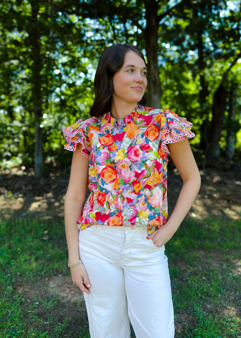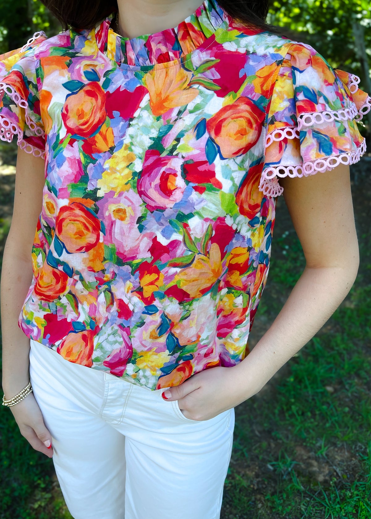 Petal Perspective Tummy Control Cropped Embroidered Risen Jeans