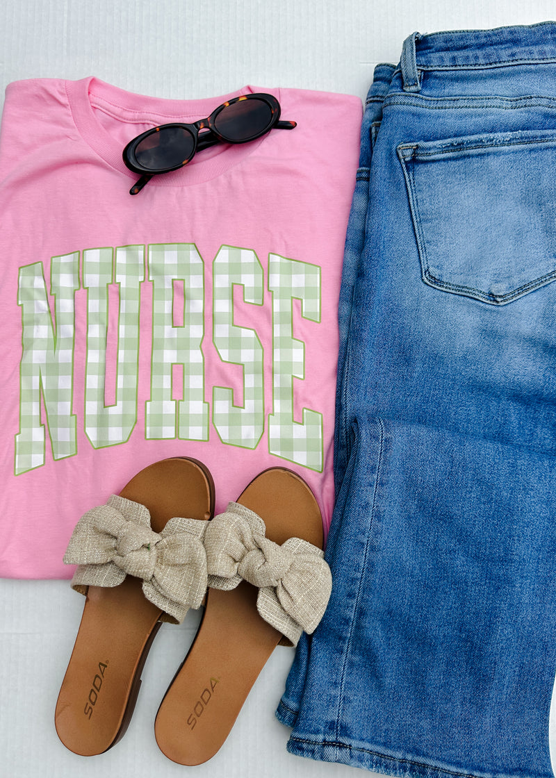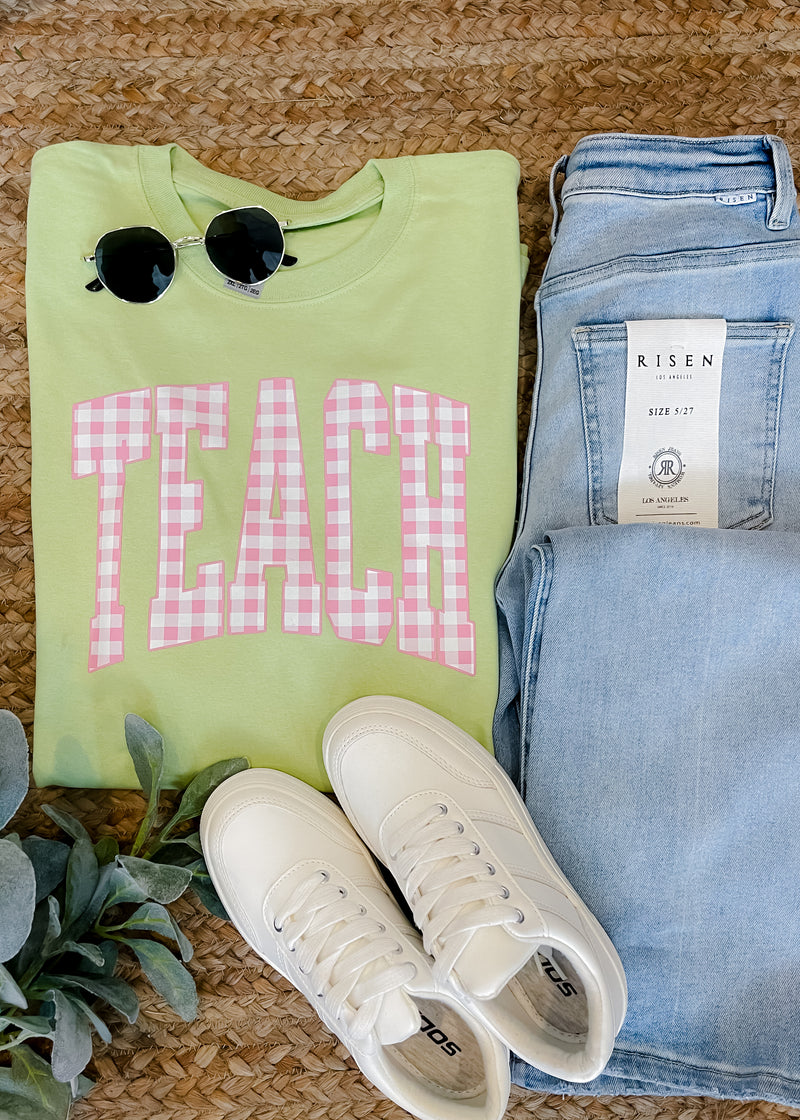 Teach Pink Gingham Graphic Tee- Kiwi(S-2XL)
