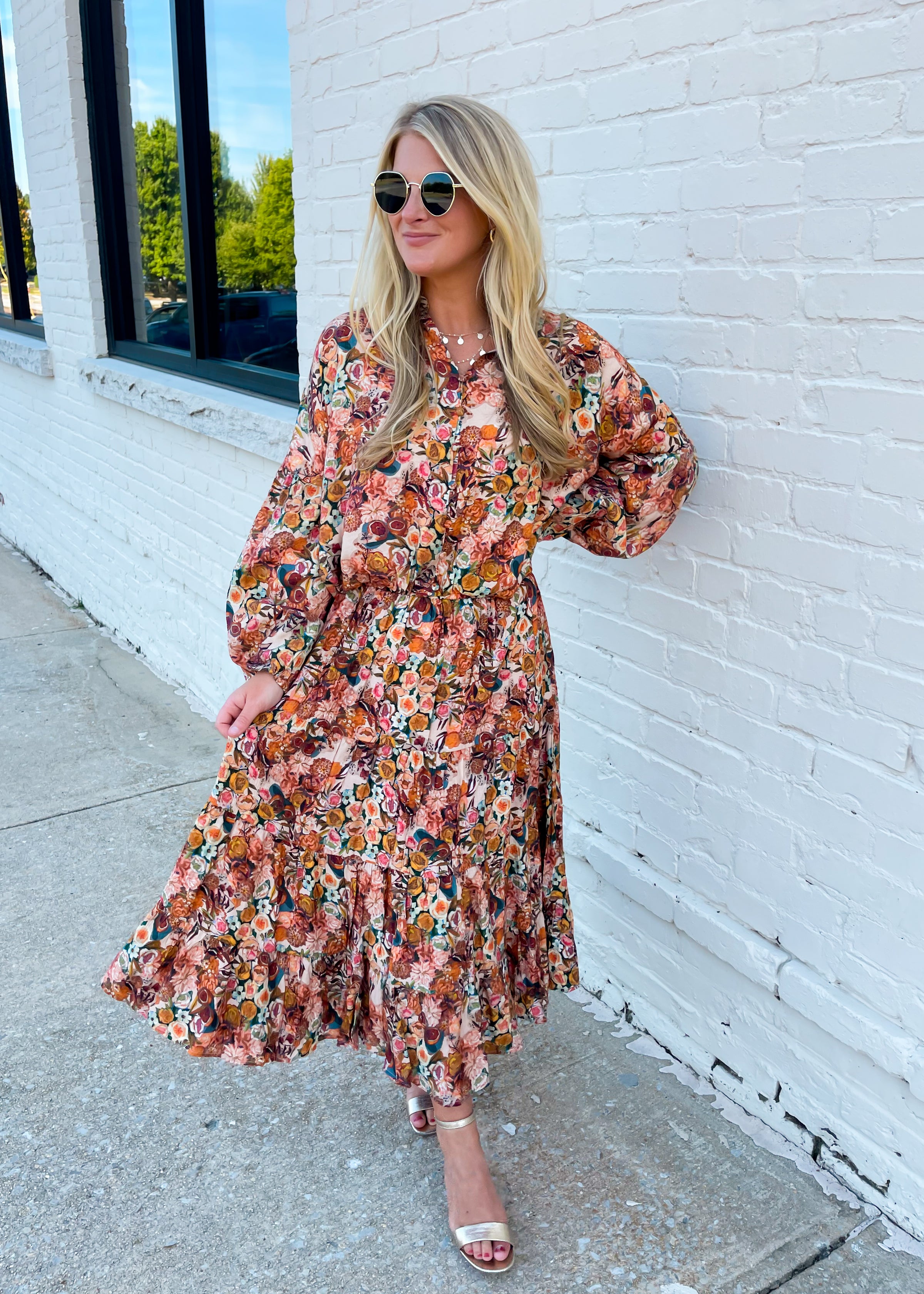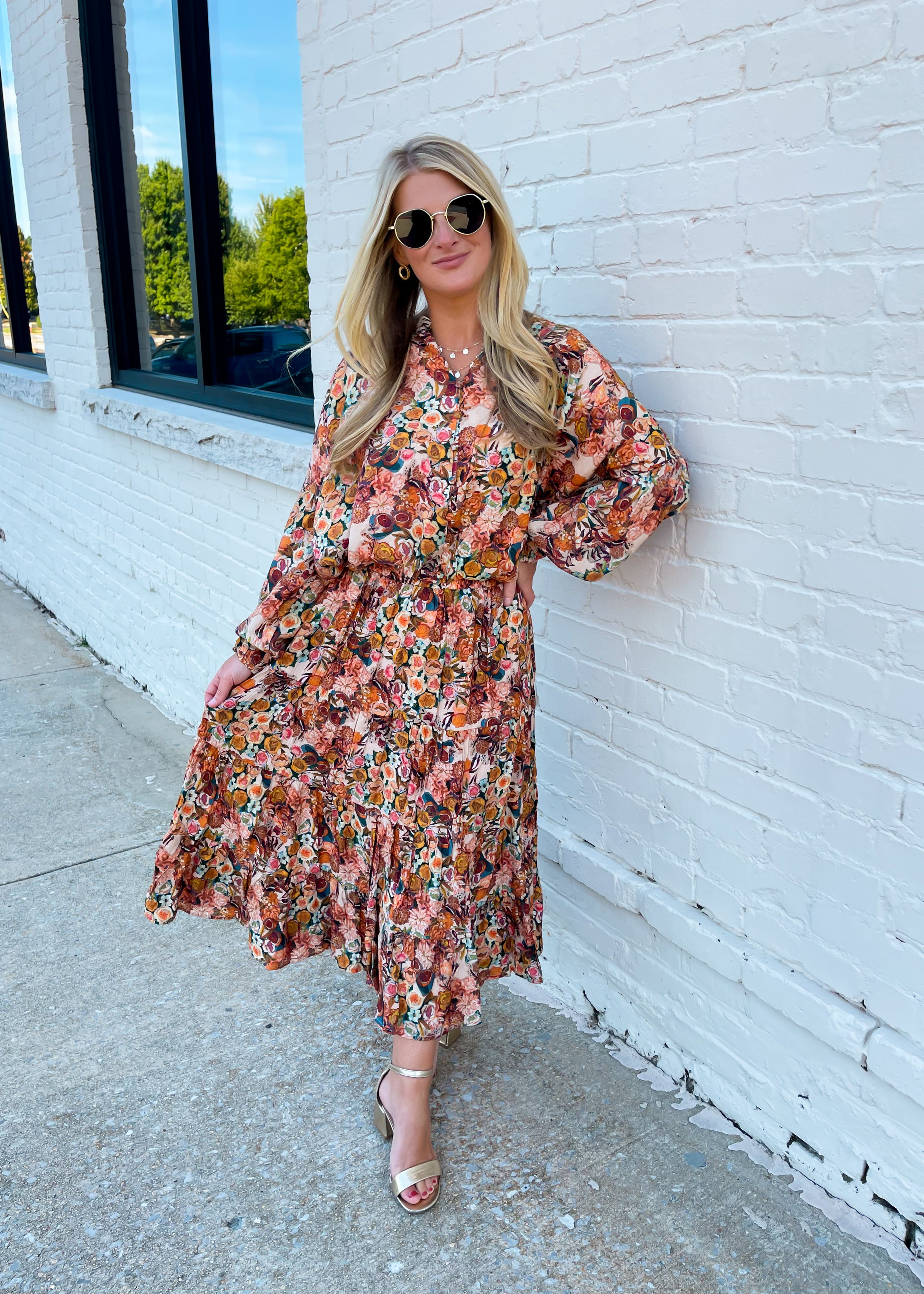 Experience the beauty of nature with our Elegance Above All Midi Skirt. This stunning piece features a delicate floral and fruit design on a taupe background, adorned with shades of green, yellow, blue, and pink. Elevate your style game with this unique and eye-catching skirt.