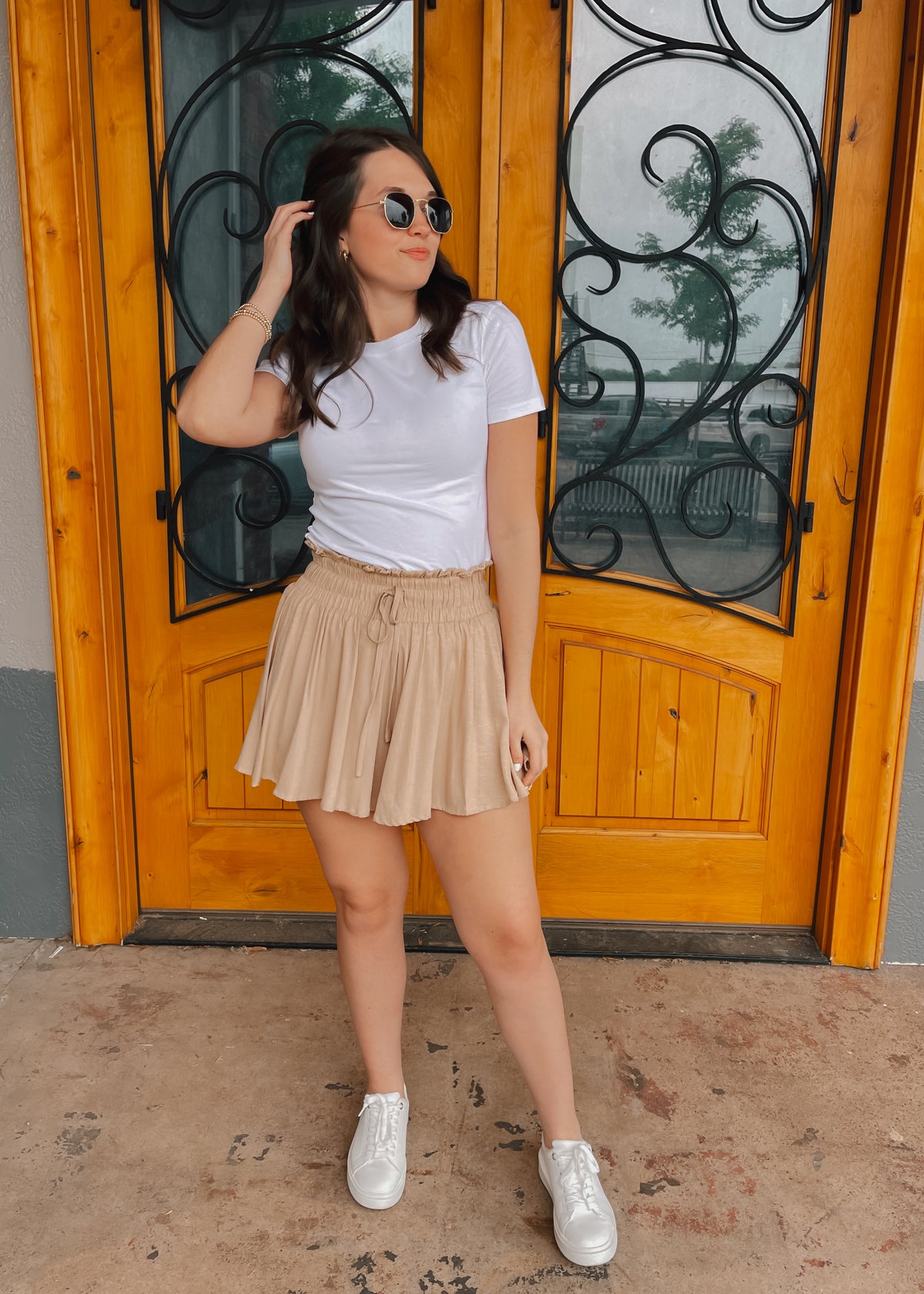 Skirt features a pretty white color, mini length, split detail, button front detail and runs true to size!