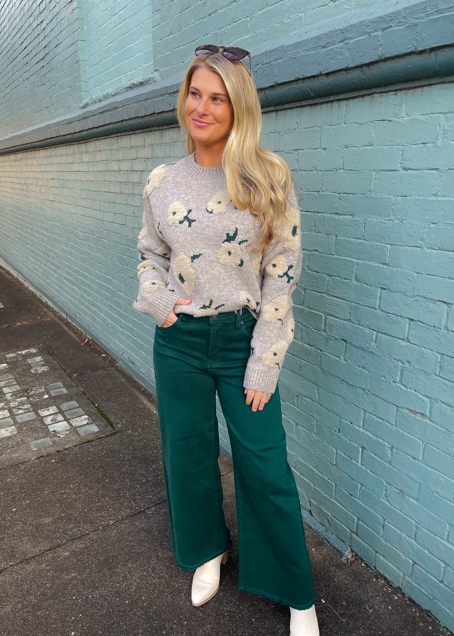 Here We Go Hunter Green Tummy Control High Rise Crop- Risen Jeans