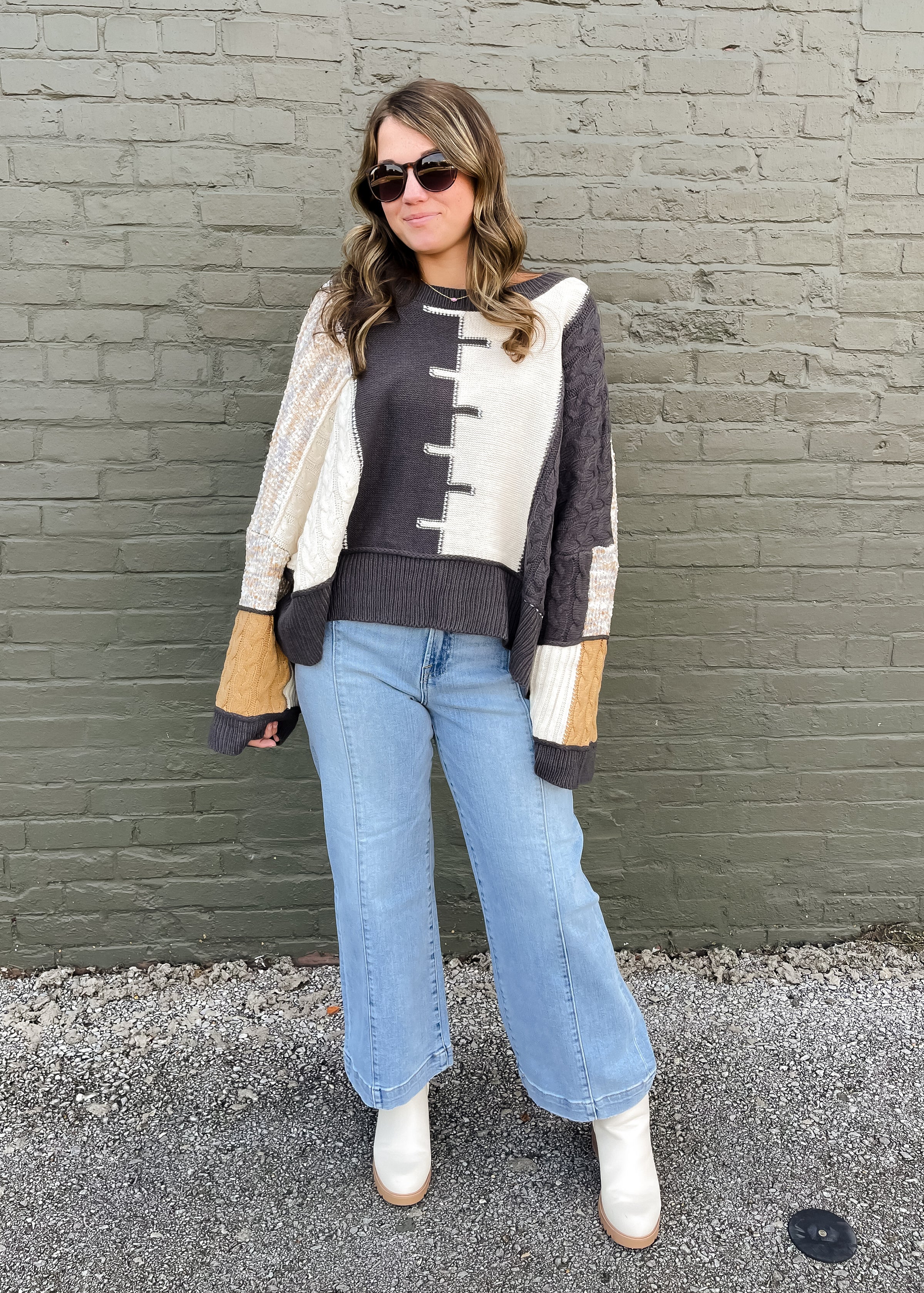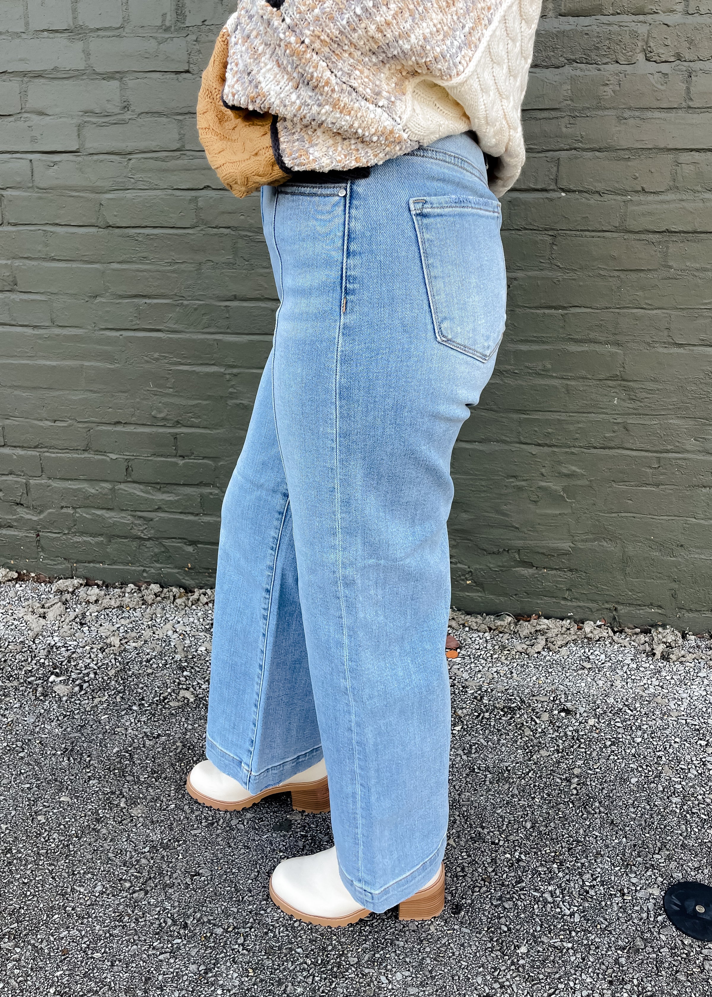 Little Too Late High Rise Crop Line Detail Wide Leg- Risen Jeans