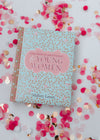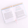 Light blue background with taupe leaves and pink flowers cover design, Silver-foiled title accents, White text, UV varnish, Padded hardcover, Full-color interior, Pink ribbon marker, 366 devotions, 400 pages