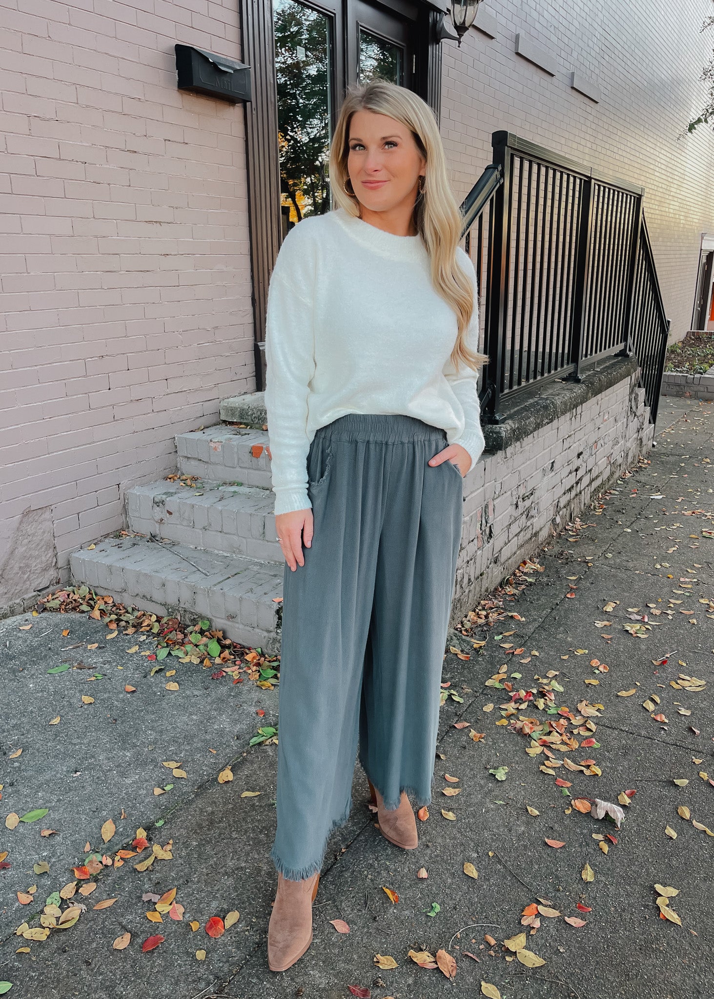 Steal The Show in these charcoal linen pants that effortlessly blend comfort with contemporary style. The relaxed wide-leg silhouette drapes beautifully while the breathable linen fabric keeps you cool all day long. Edgy frayed hems and pocket details add a modern touch that elevates any outfit from casual to chic. Whether you're heading to brunch or a night out, these pants deliver that perfect balance of laid-back sophistication and polished appeal. Experience the freedom of movement without sacrificing style.