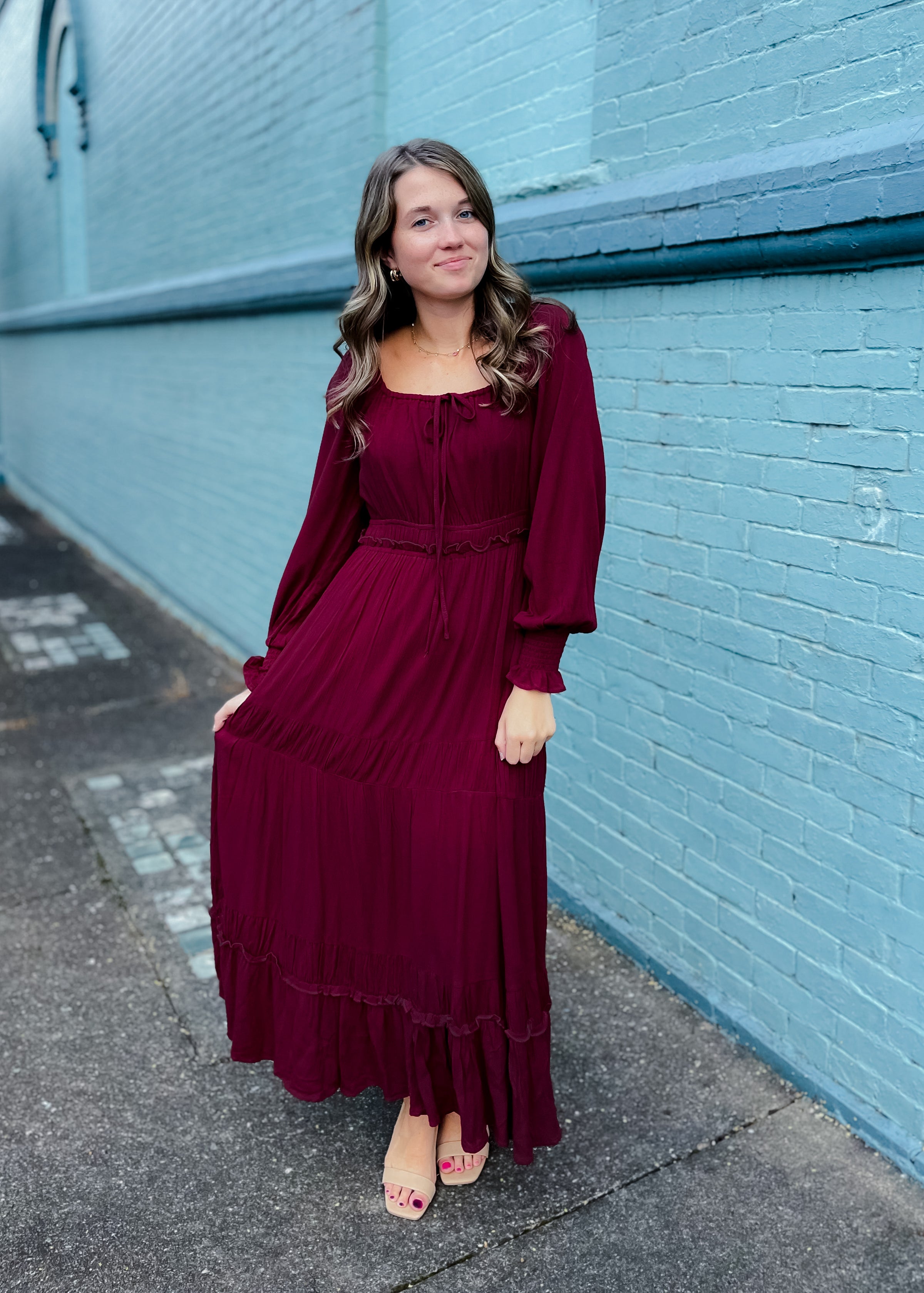 Experience effortless elegance with The Choice is Clear Maxi Dress. This cherry lacquer-colored masterpiece features a gathered square neckline and long sleeves with delicate smocking for a flattering fit. Fully lined and equipped with convenient pockets, it combines style with practicality. The smocked waist accentuates your silhouette, creating a look that’s both comfortable and captivating from day to night. Perfect for any occasion where you want to stand out with grace and ease.