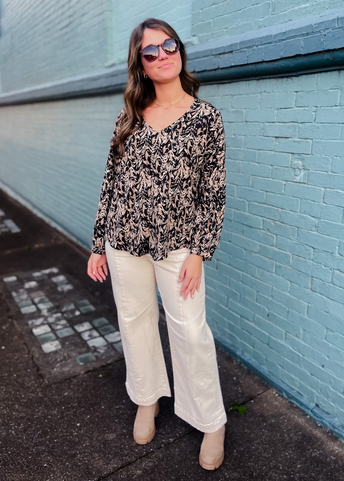 Without Thinking Ivory Tummy Control High Rise Line Detail Wide- Risen Jeans